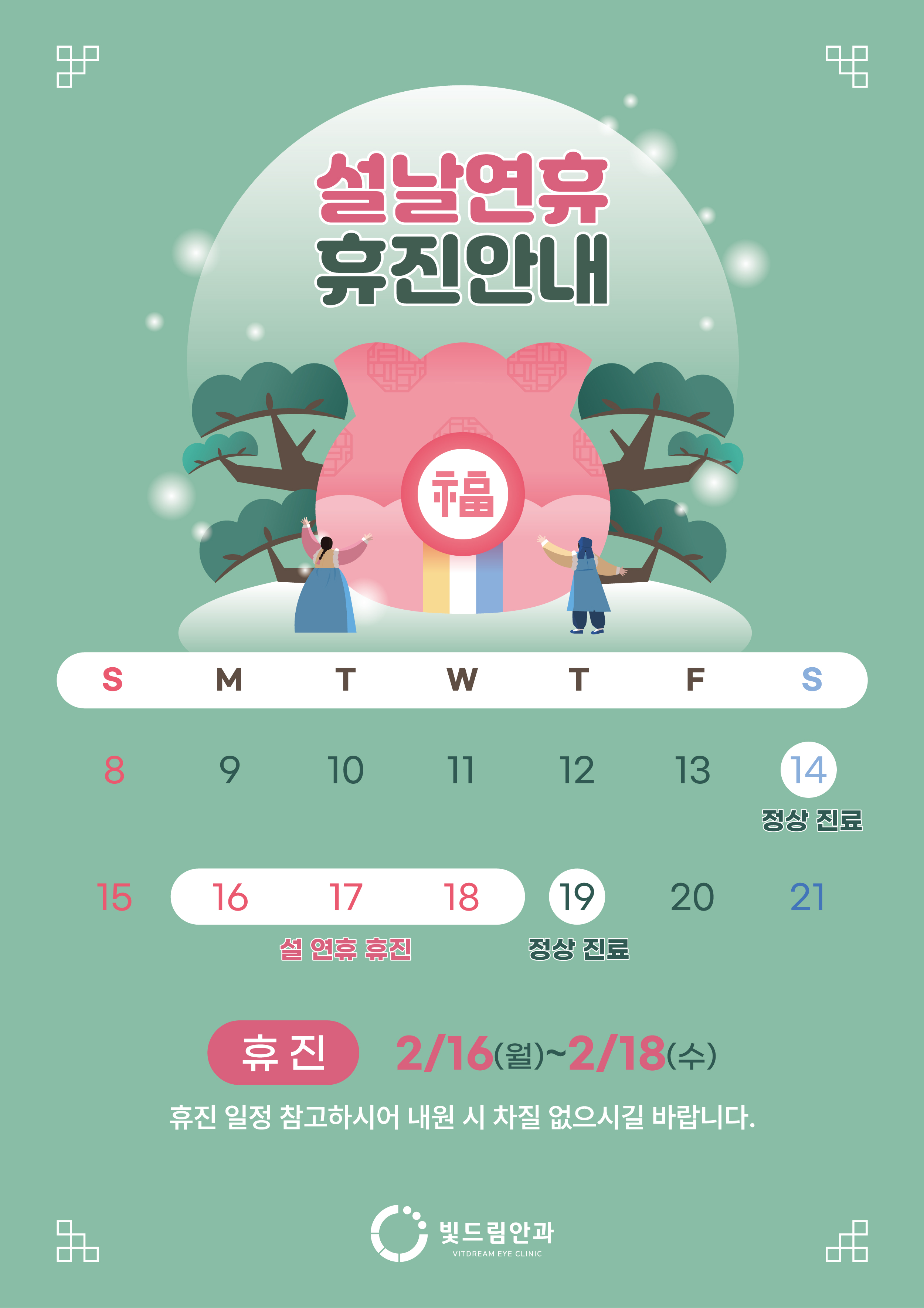 * 일요일 및 공휴일은 휴진입니다.